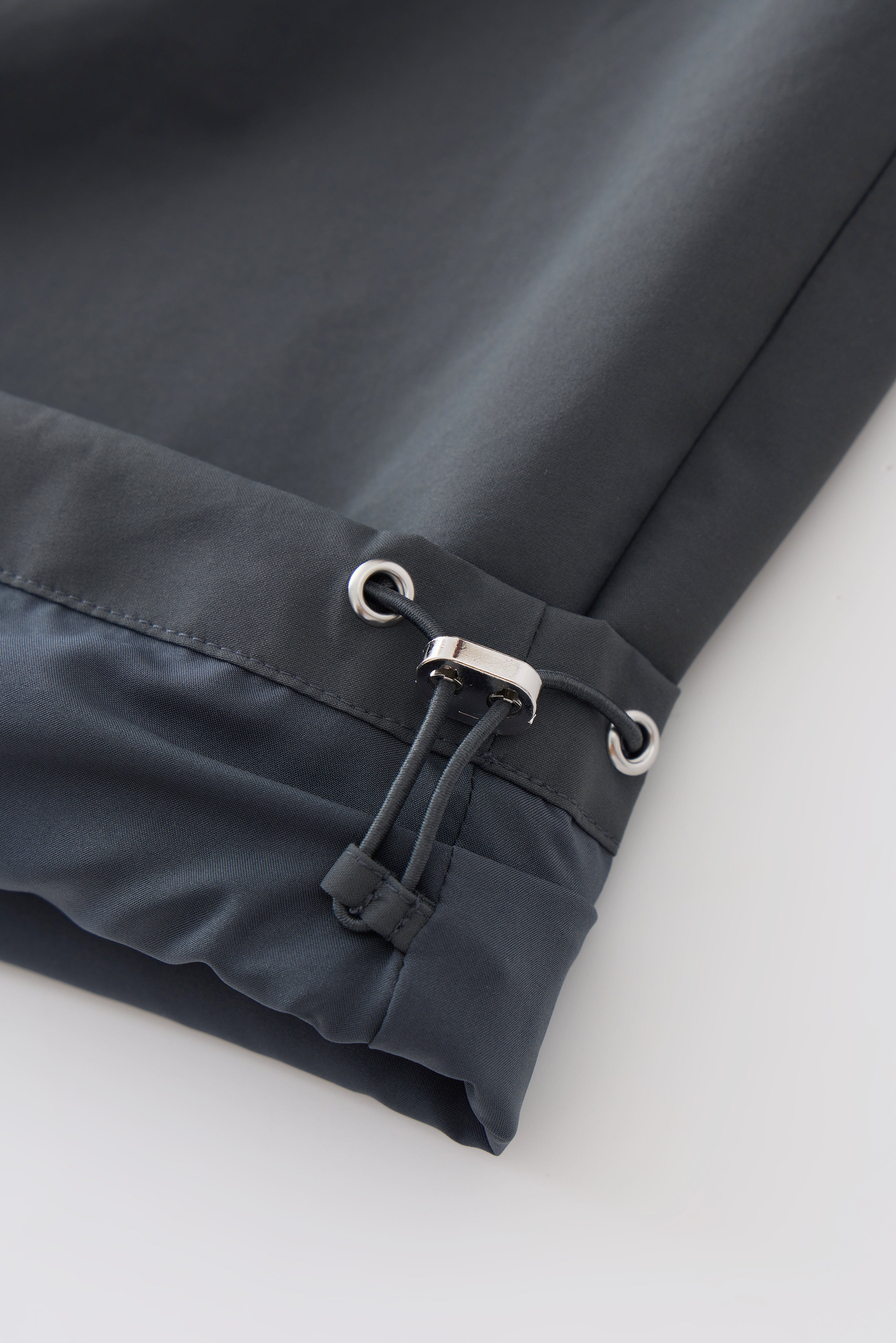 Detaljer: Diskret gummilogo ved taljen og justerbare snore i benafslutningen.