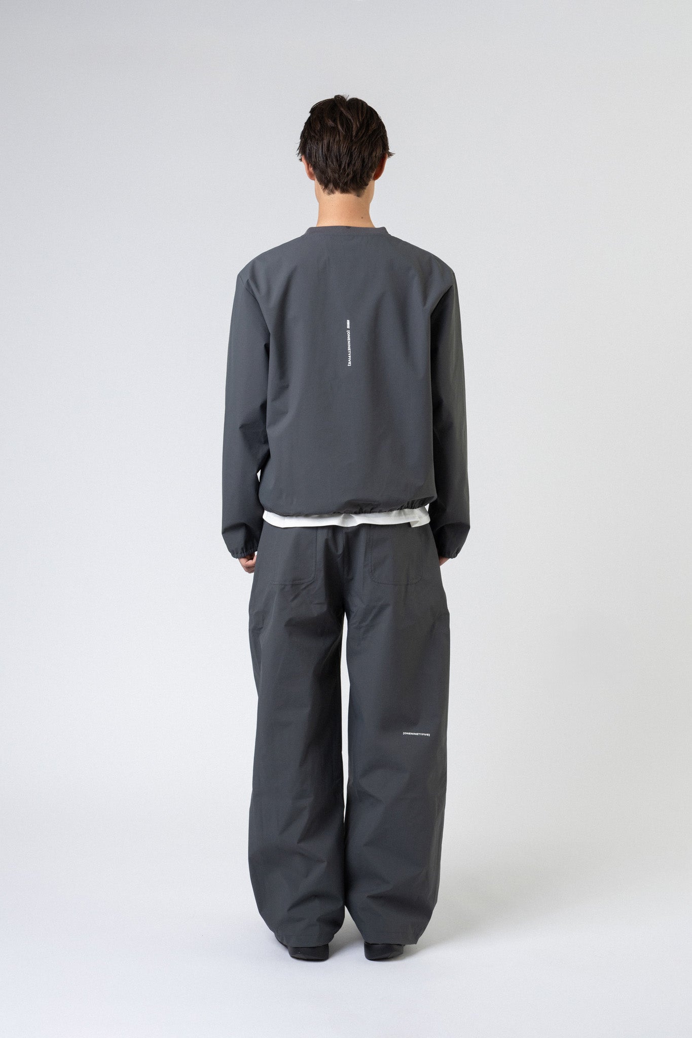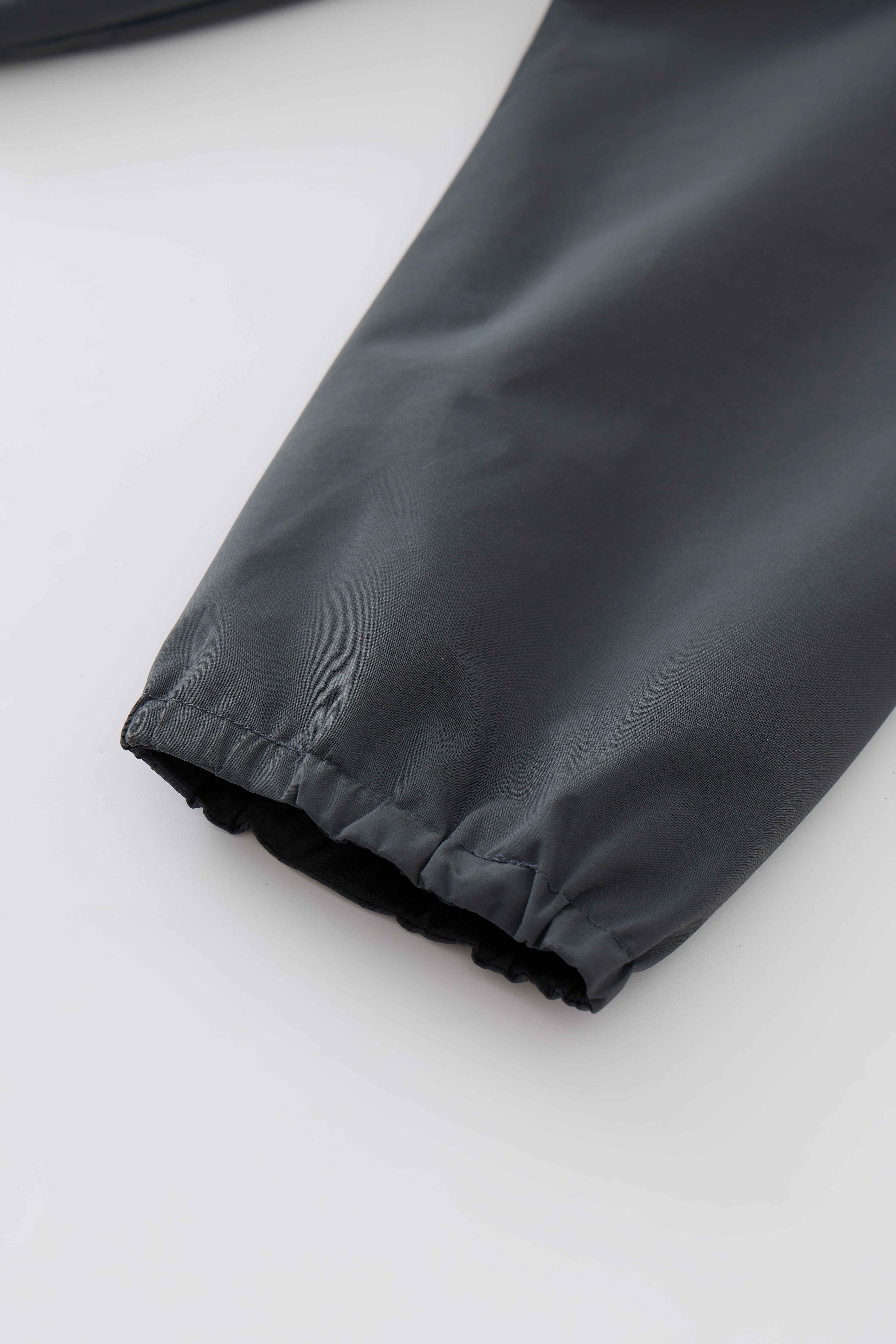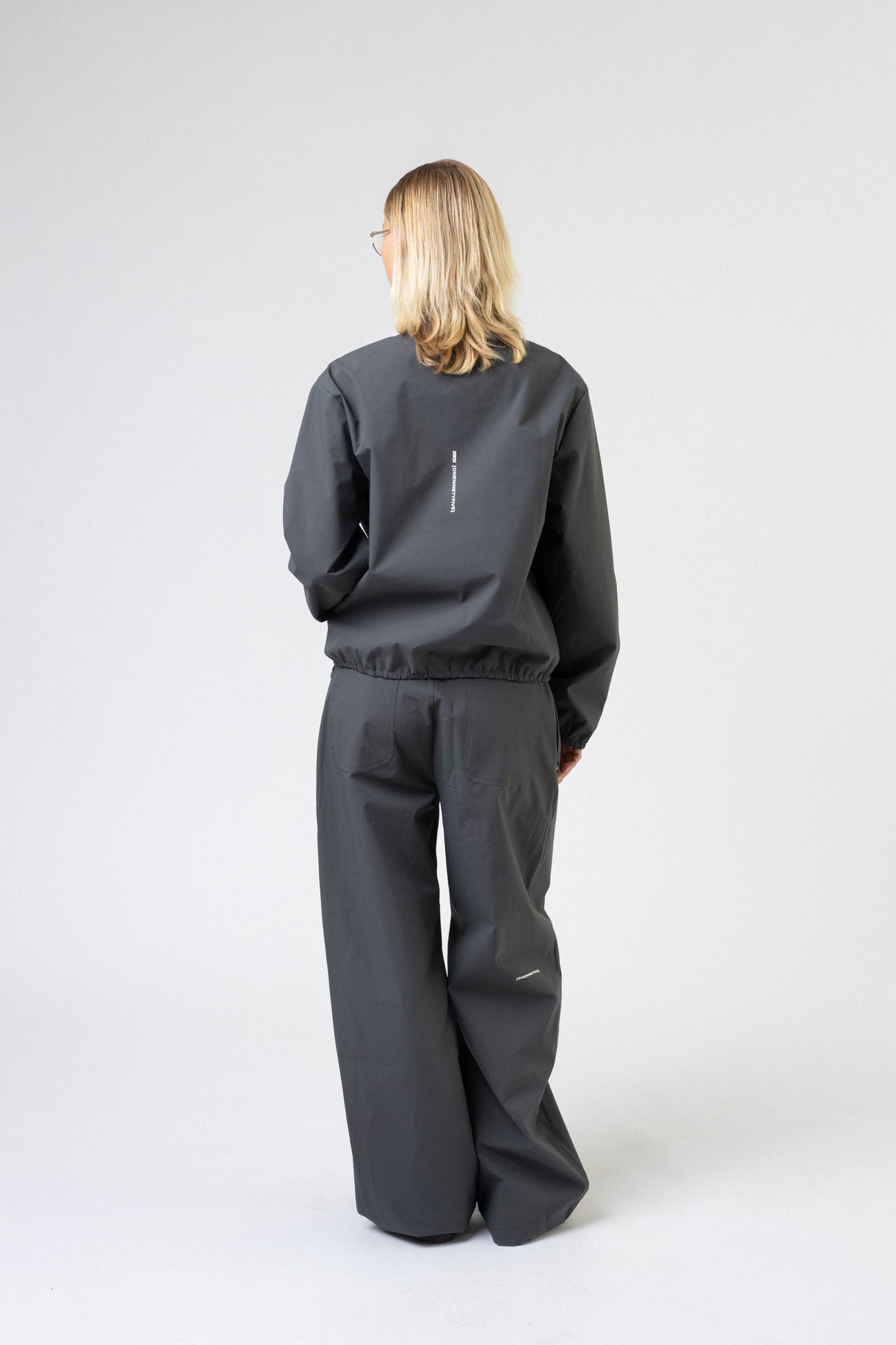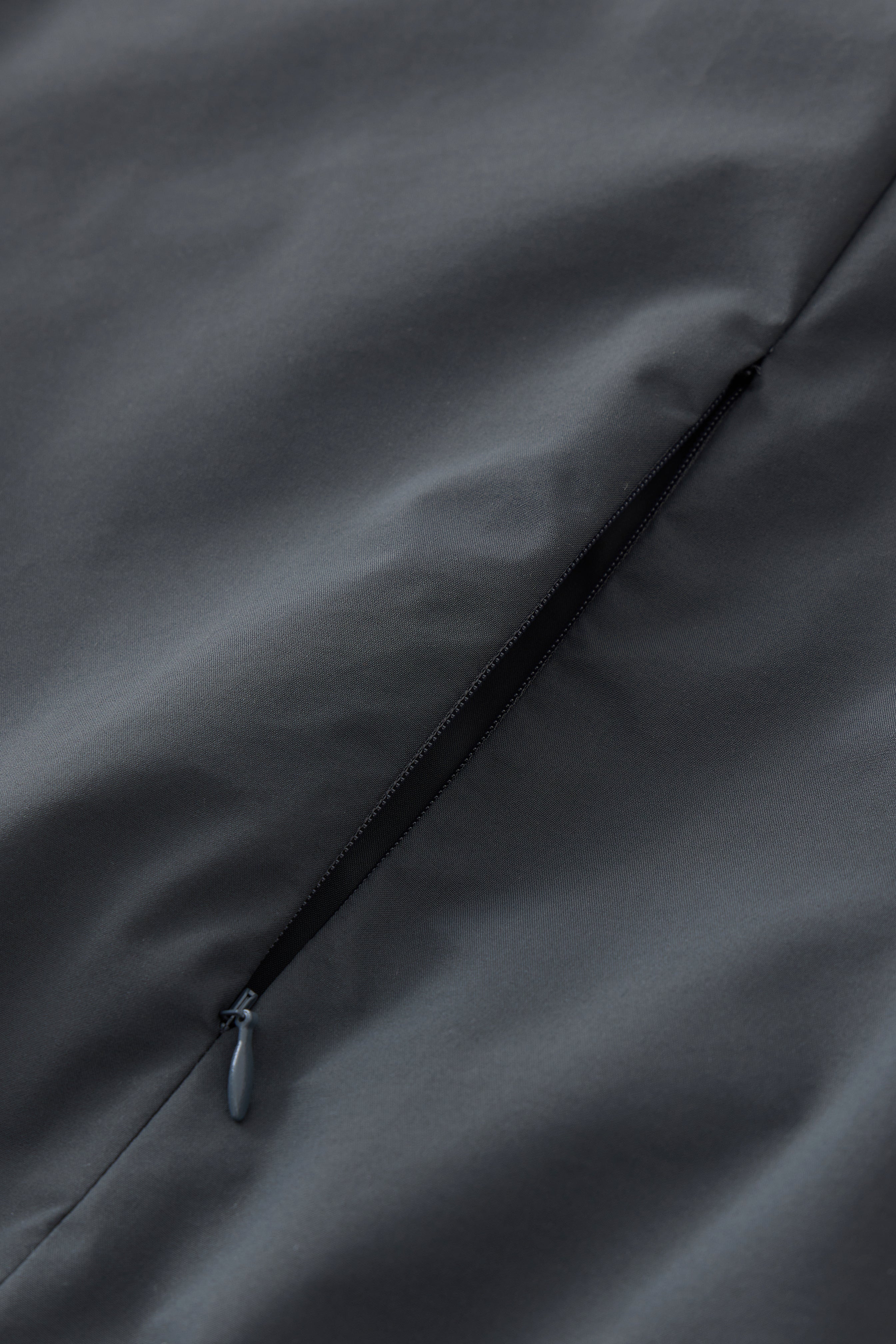Detaljer: Diskret gummilogo, lynlåslommer i siden og elastiske afslutninger for en clean silhuet