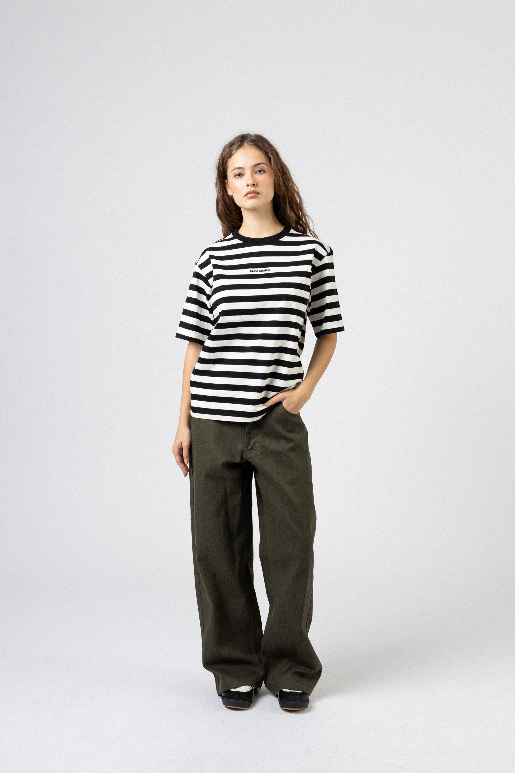 Globe Studios Striped kommer i et blødt materiale med et brodering på fronten. T-shirten er konstrueret i 100% bomuld.